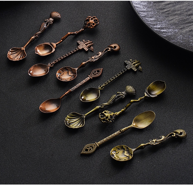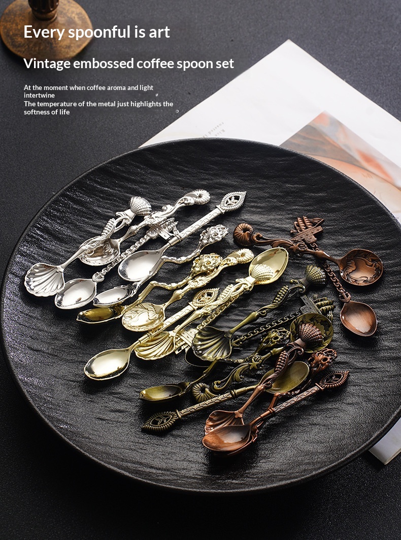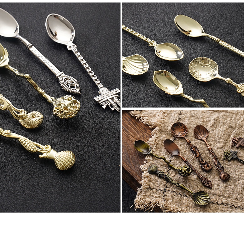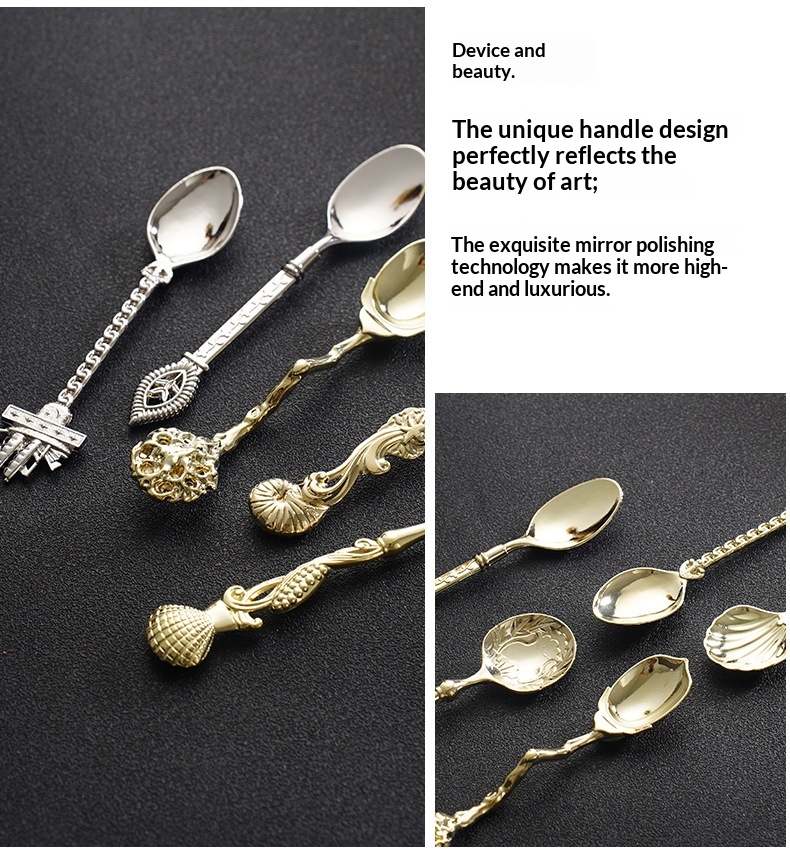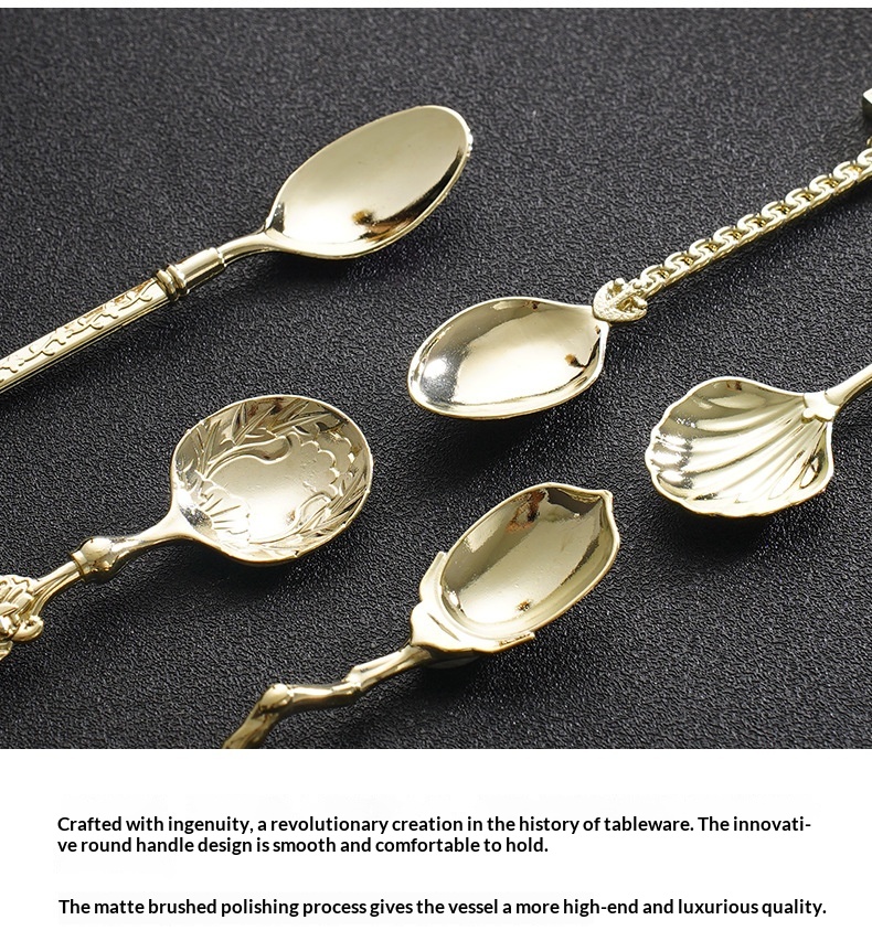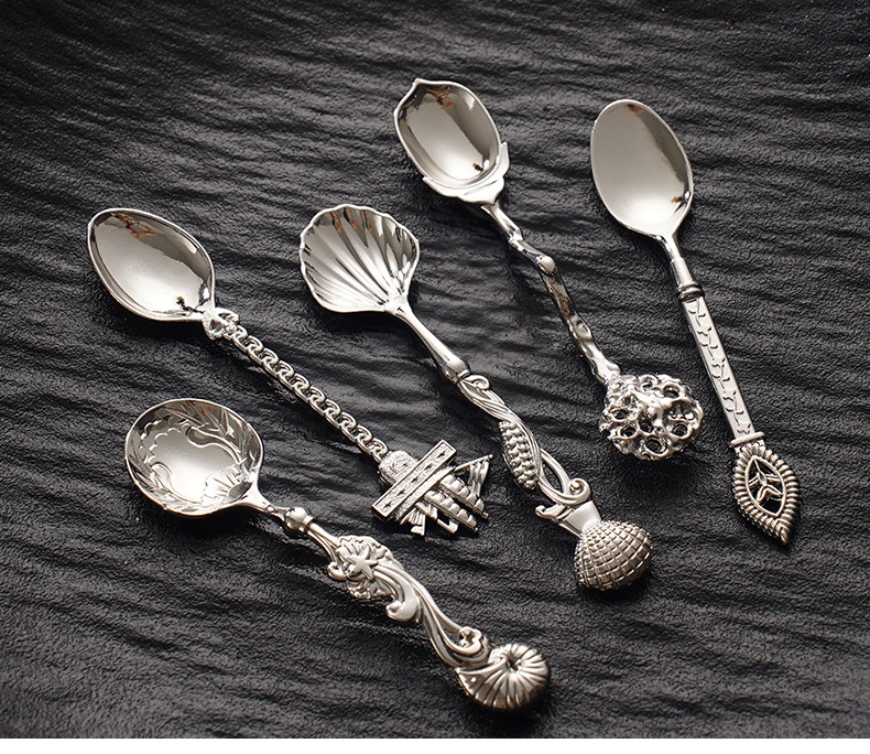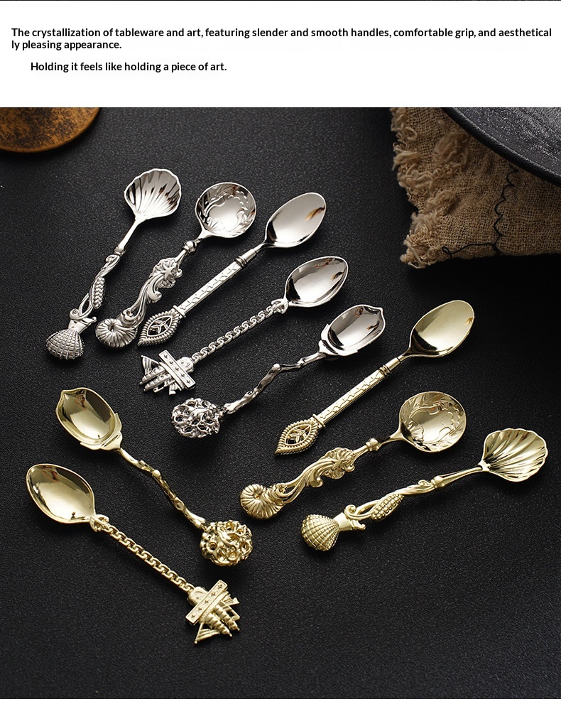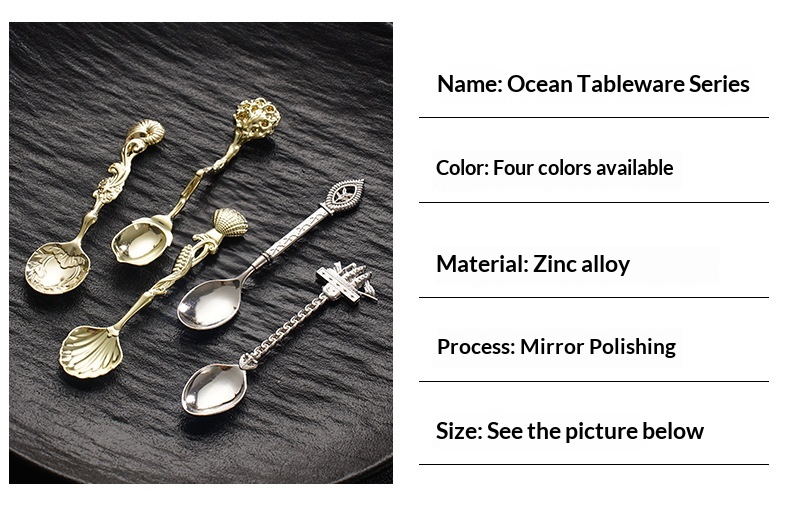 5-Piece Set Zinc Alloy Dessert & Coffee Spoon with Ocean Design