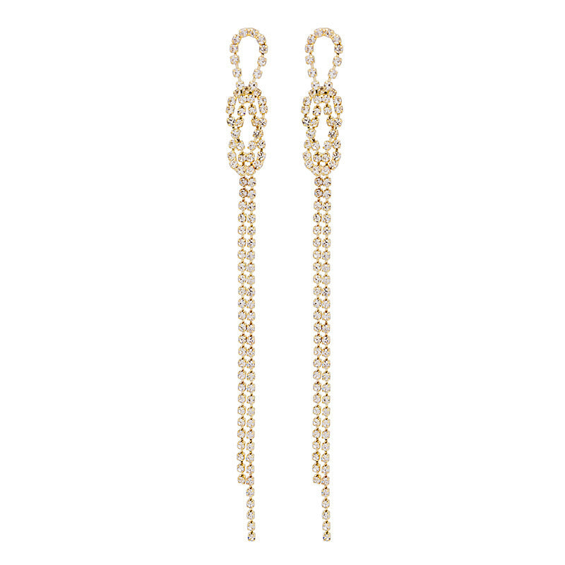925 Silver Needle Knotted Diamonds Long Tassel Earrings