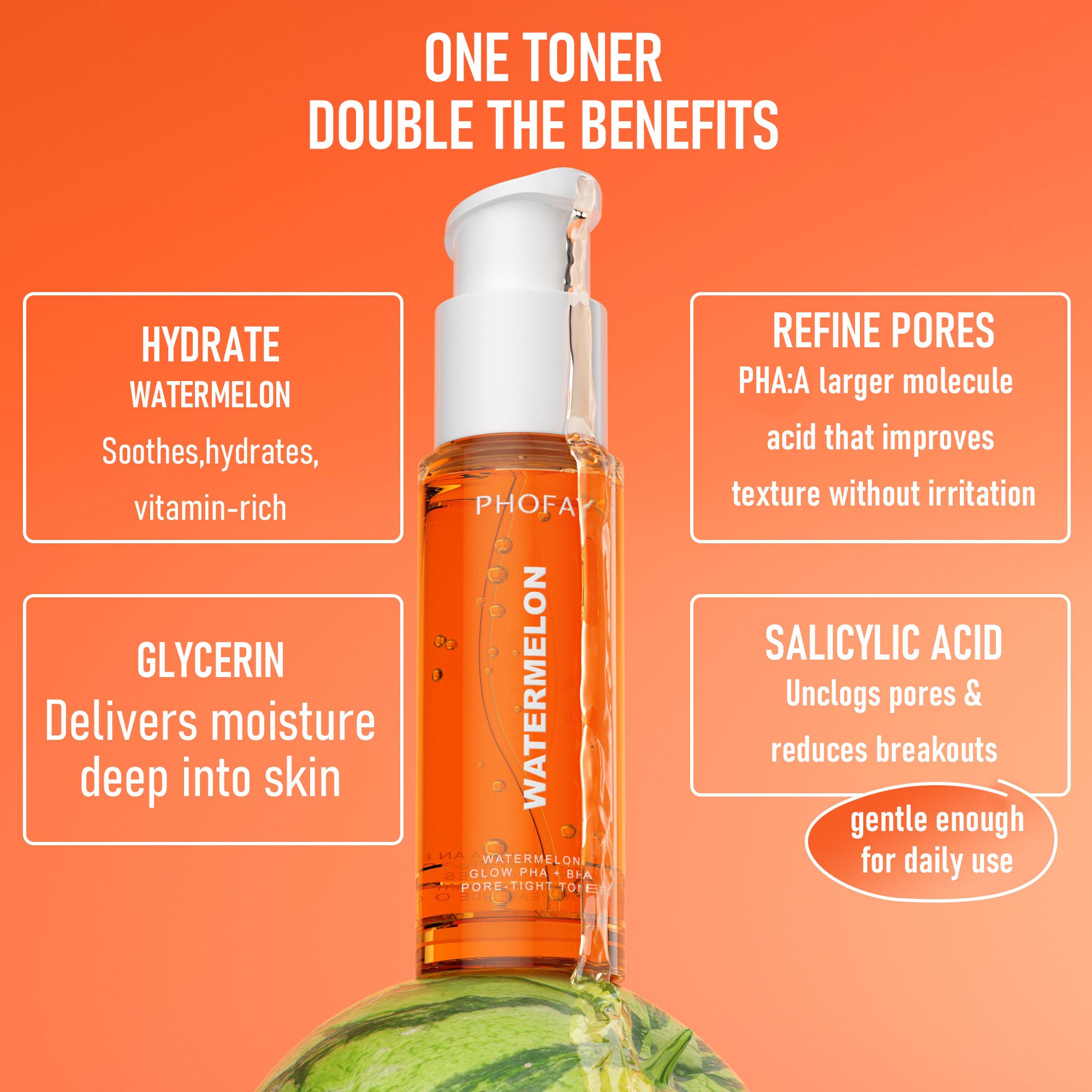 Phofay Por Watermelon Glow PHA + BHA Pore-tight Toner combines gentle exfoliating acids to refine pores and brighten the complexion. Formulated with PHA and BHA, it helps remove dead skin cells and excess oil, promoting clearer, smoother skin without irritation. Infused with watermelon extract, it provides a refreshing boost of hydration and antioxidants. Ideal for improving skin texture while maintaining balance, this toner supports a more radiant and tightened appearance with regular use.