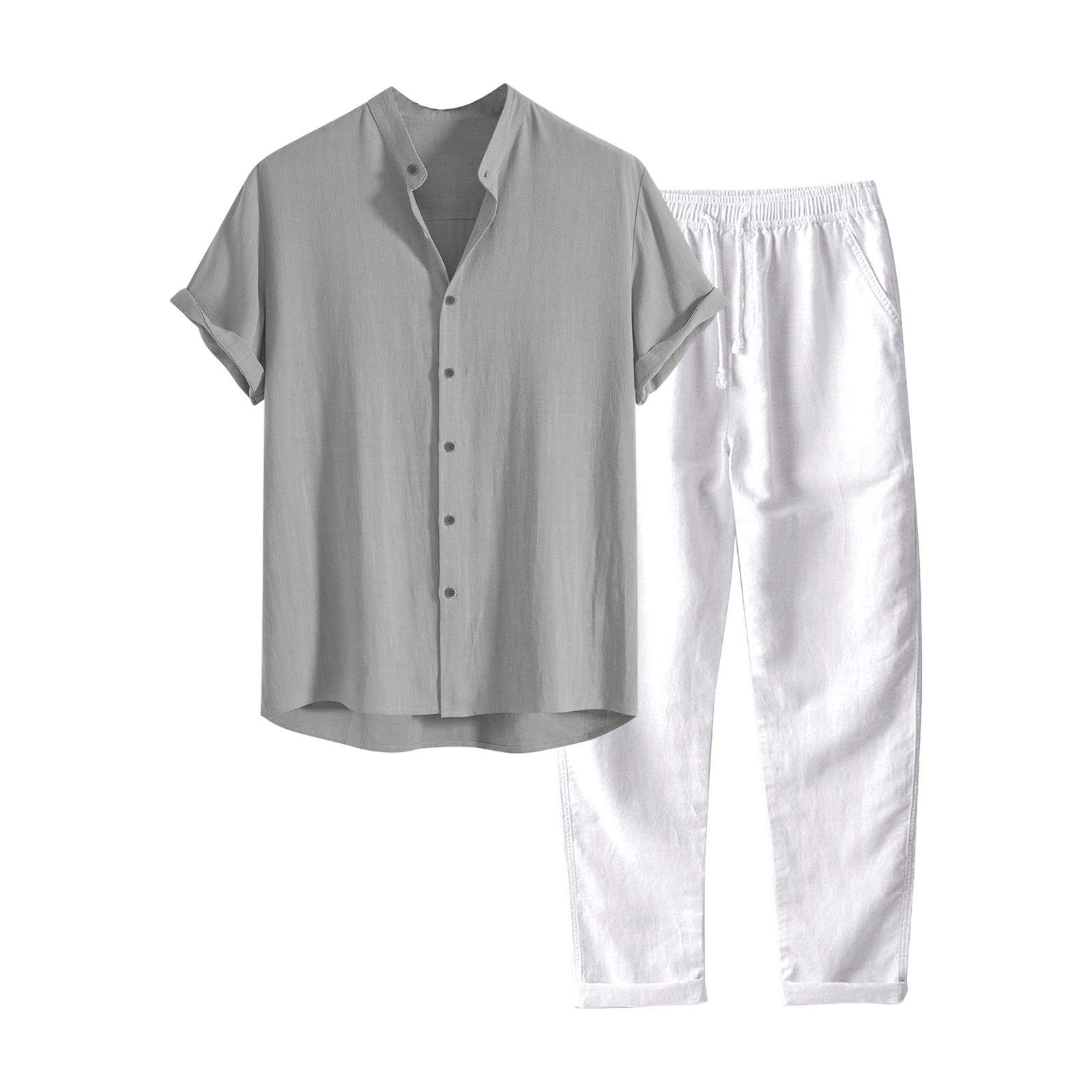 Casual Stand Collar Slim Fit Cotton And Linen Suit