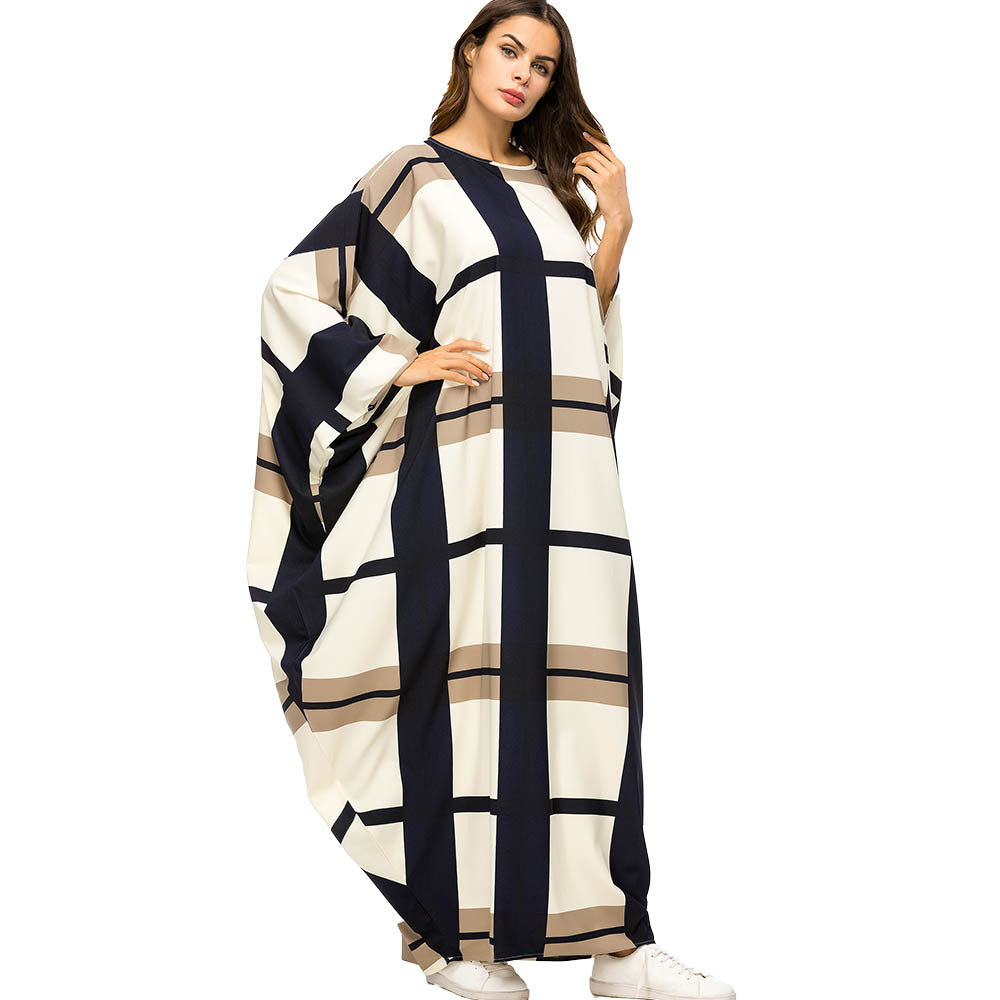 Contrast Stitching Bat Sleeve Loose Dress
