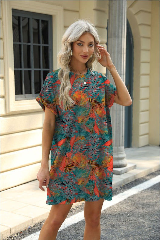 Loose Crew Neck Short Sleeve Pocket Dress