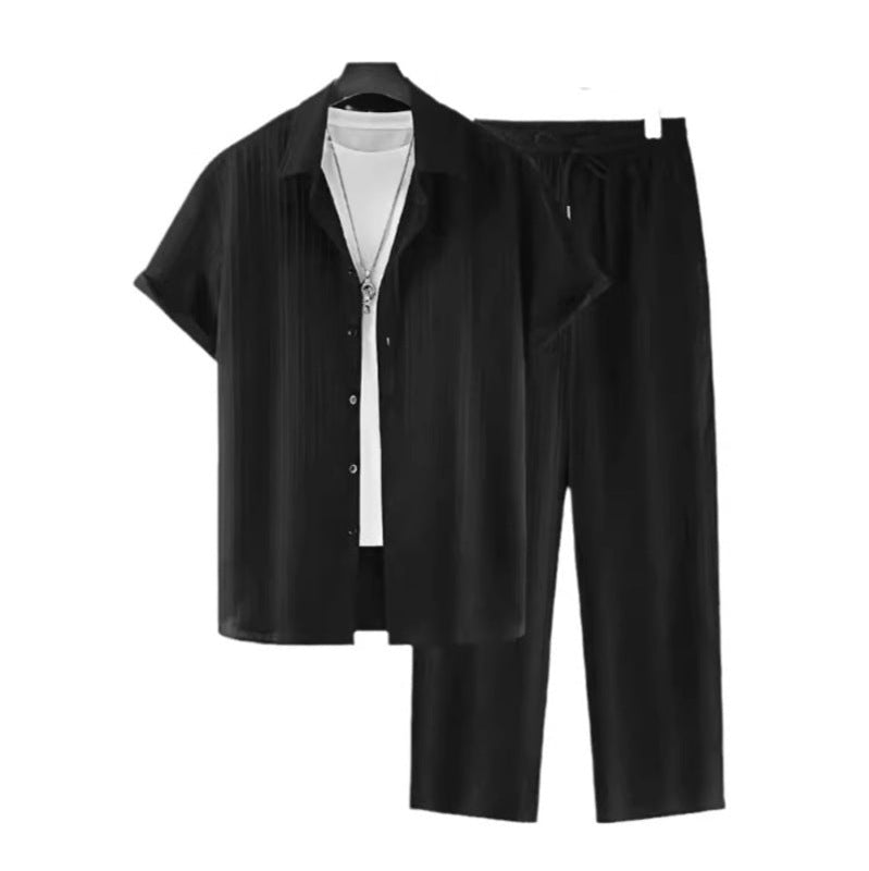 Men's Striped Short-sleeved Shirt Trousers Suit