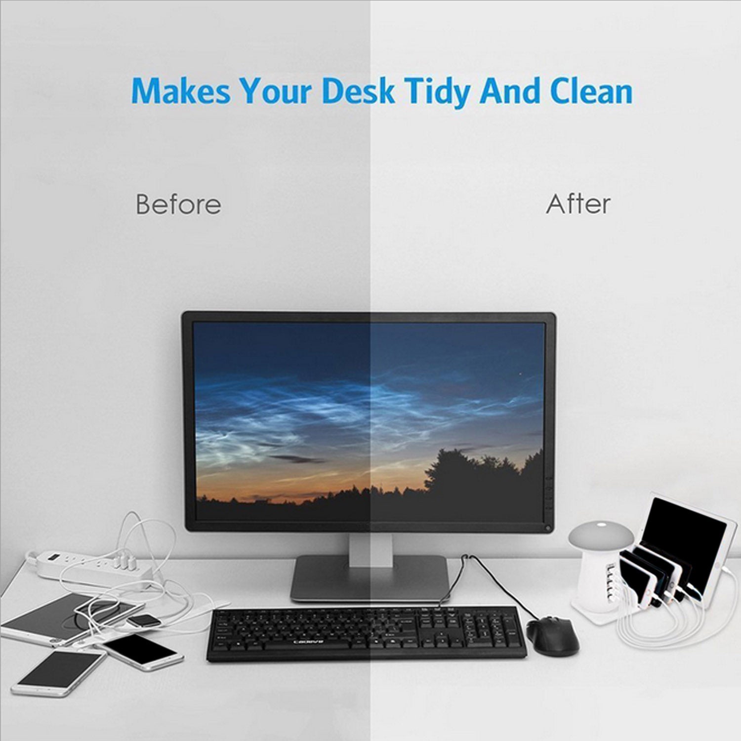 5 ports charger station allowed this docking station can charge up to 5 devices simultaneously, you can use it to charge all your smart phones, tablets at home or in the office which keeps everything in one place, convenient and organizes the pool of cables from your desk equipped with new generation super intelligent chip which provide multiple protection.