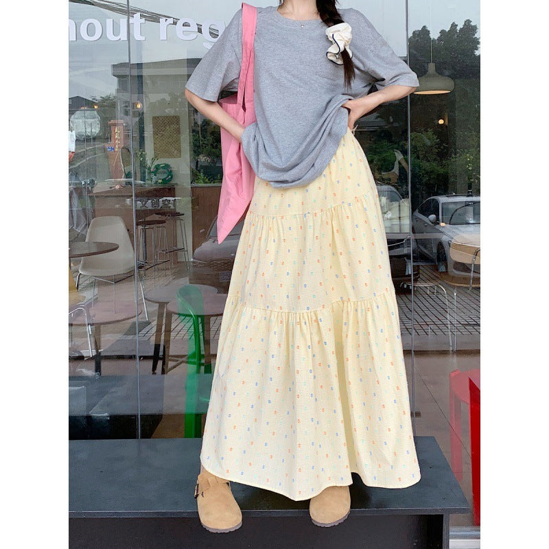 Plaid Embroidery Casual A- Line Skirt Free Size