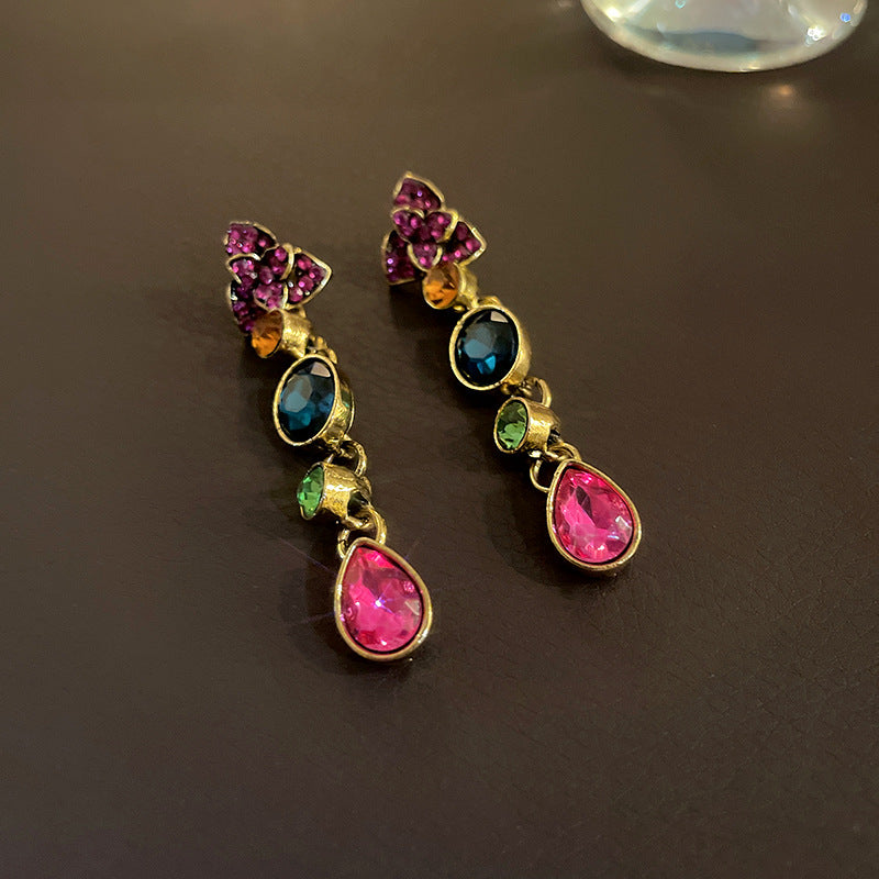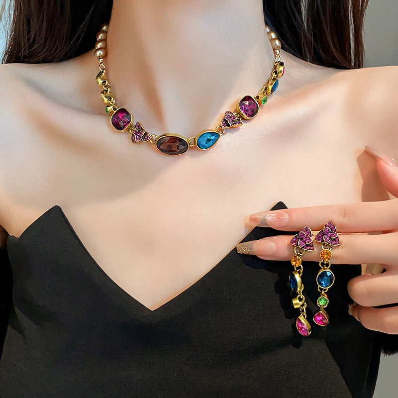 Rhinestone-encrusted Flower Necklace & Earrings Combination