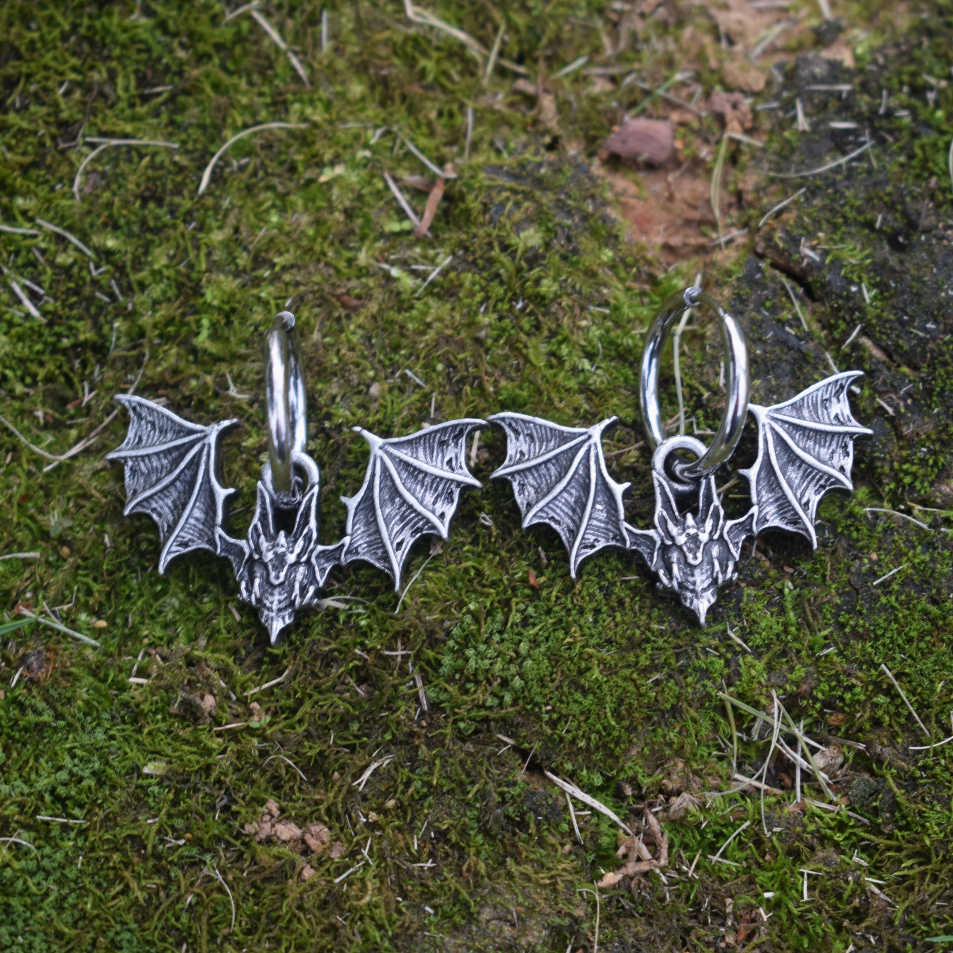 Stainless Steel Witchcraft Halloween Gothic Bat Earrings