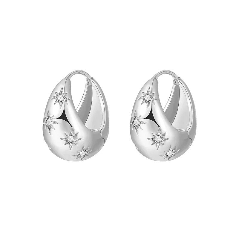 Sterling Silver Needle Street Fashion Geometry Pattern Round Rhinestone Earrings