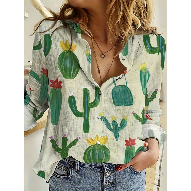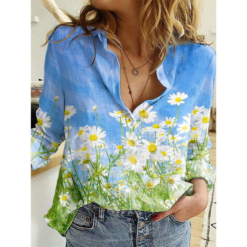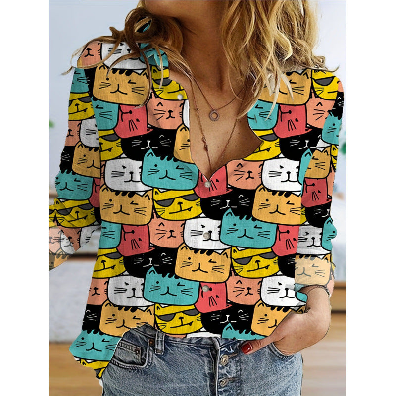 3d Printed Long Sleeve Turn-down Collar Casual Shirt